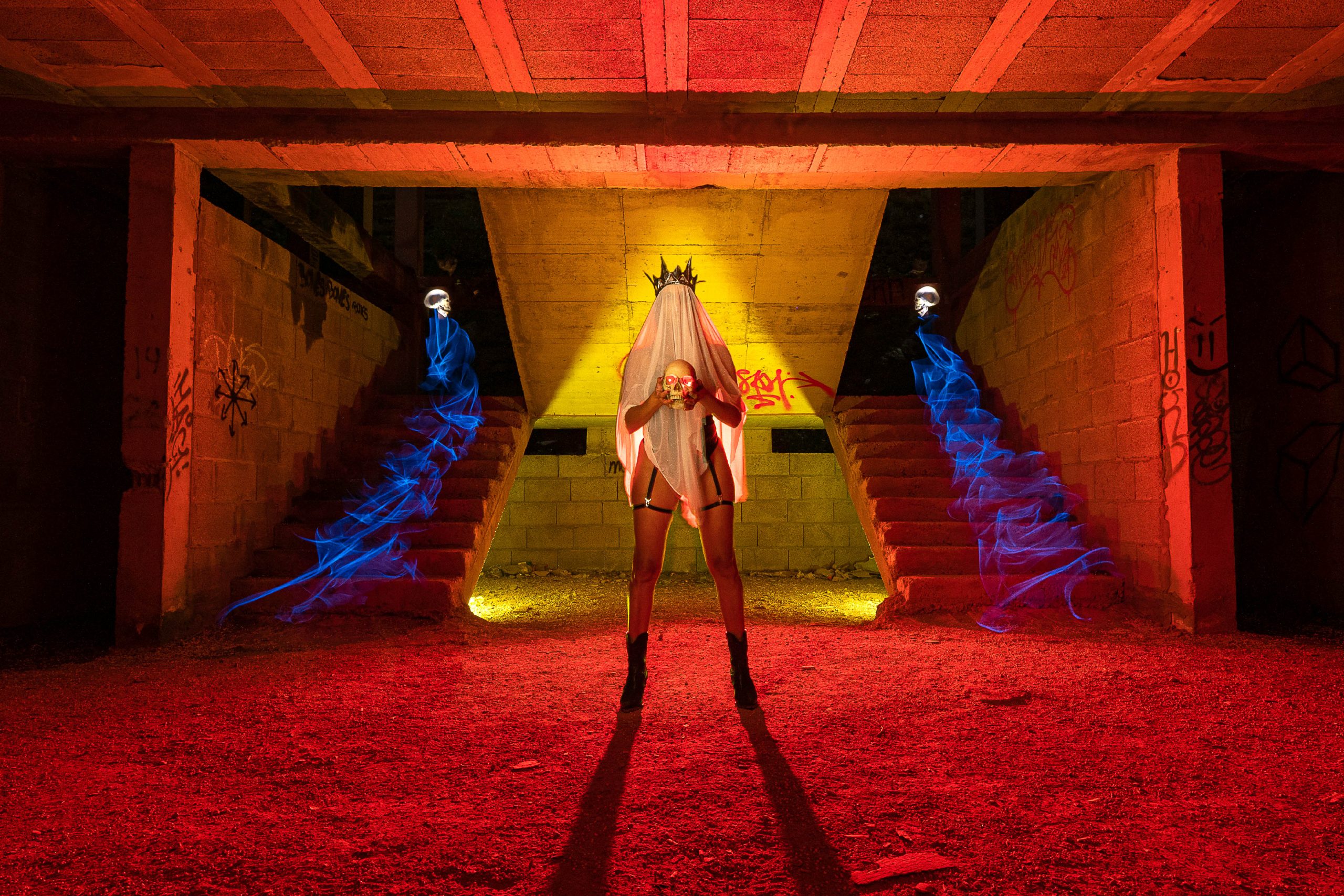 Su trabajo representa una fusión entre arte, tecnología, performance y fotografía experimental, con una identidad muy ligada a la noche, al silencio y a la energía que se despliega en la oscuridad.